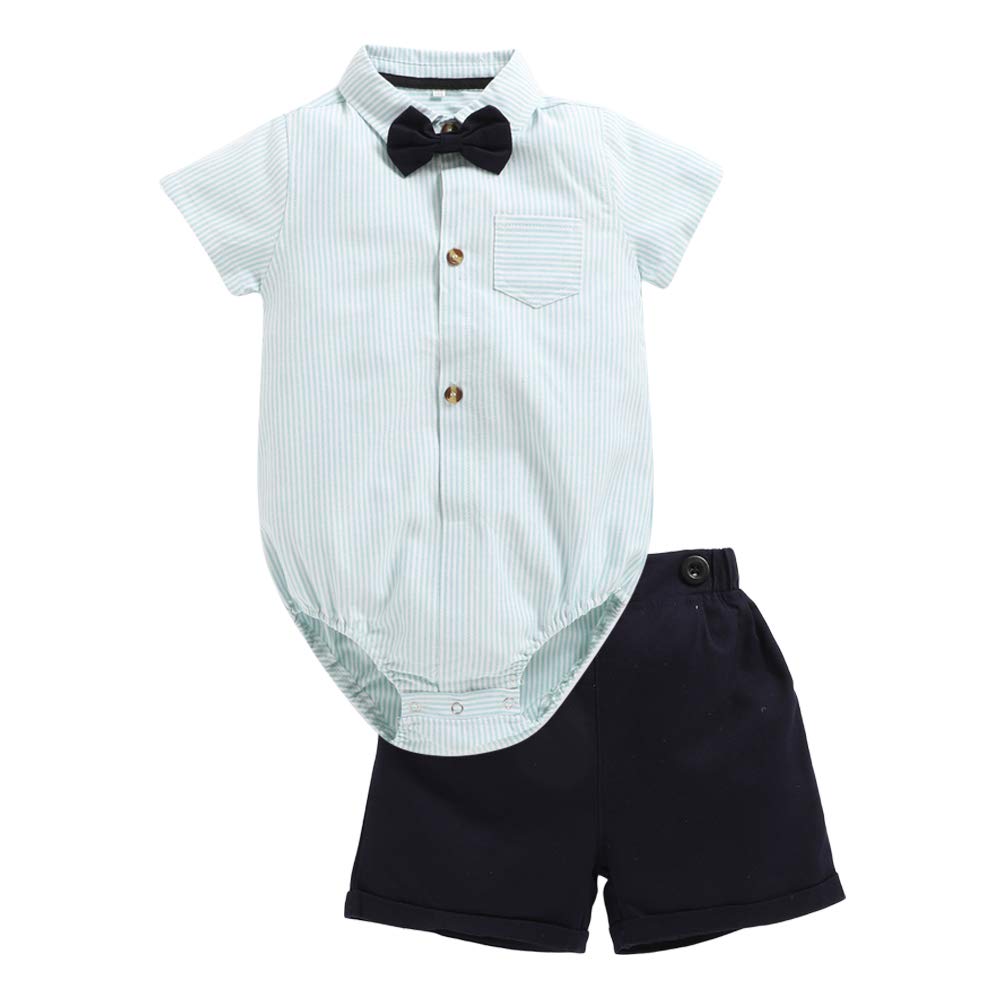 Hopscotch Banming Baby Boys Solid Classic Half Sleeves Onesies and Short Set in Green Color
