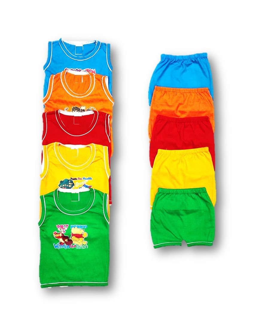 Apparel Combo Set features 5 Sleeveless Round Neck Tshirt and 5 Vibrant Color Shorts for Kids
